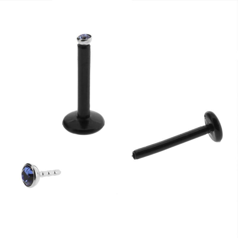 Surgical Steel Jewelled Insert For Bioplast Labret Light Blue Sapphire