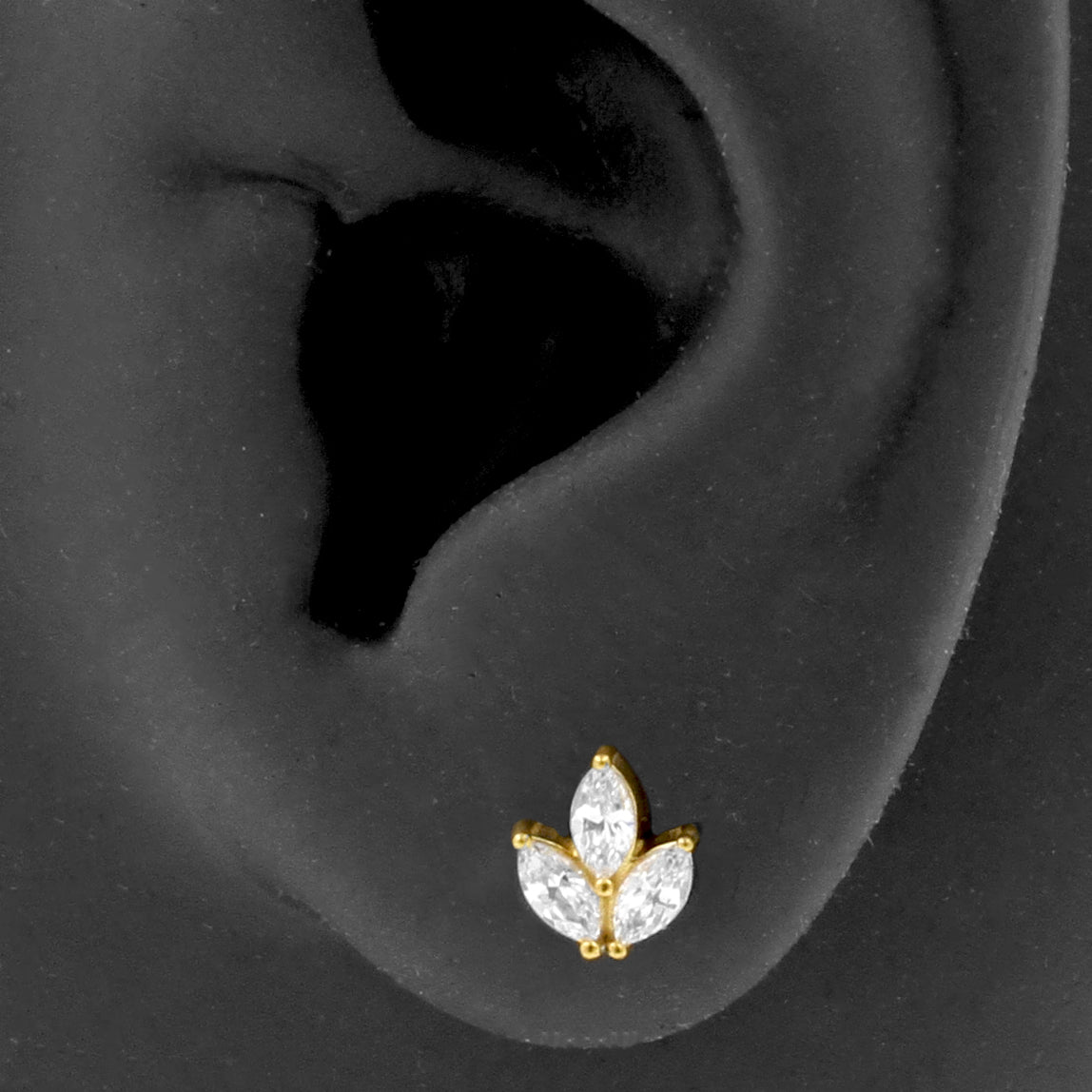 Surgical Steel Marquise Zirconia Cluster Ear Studs Gold
