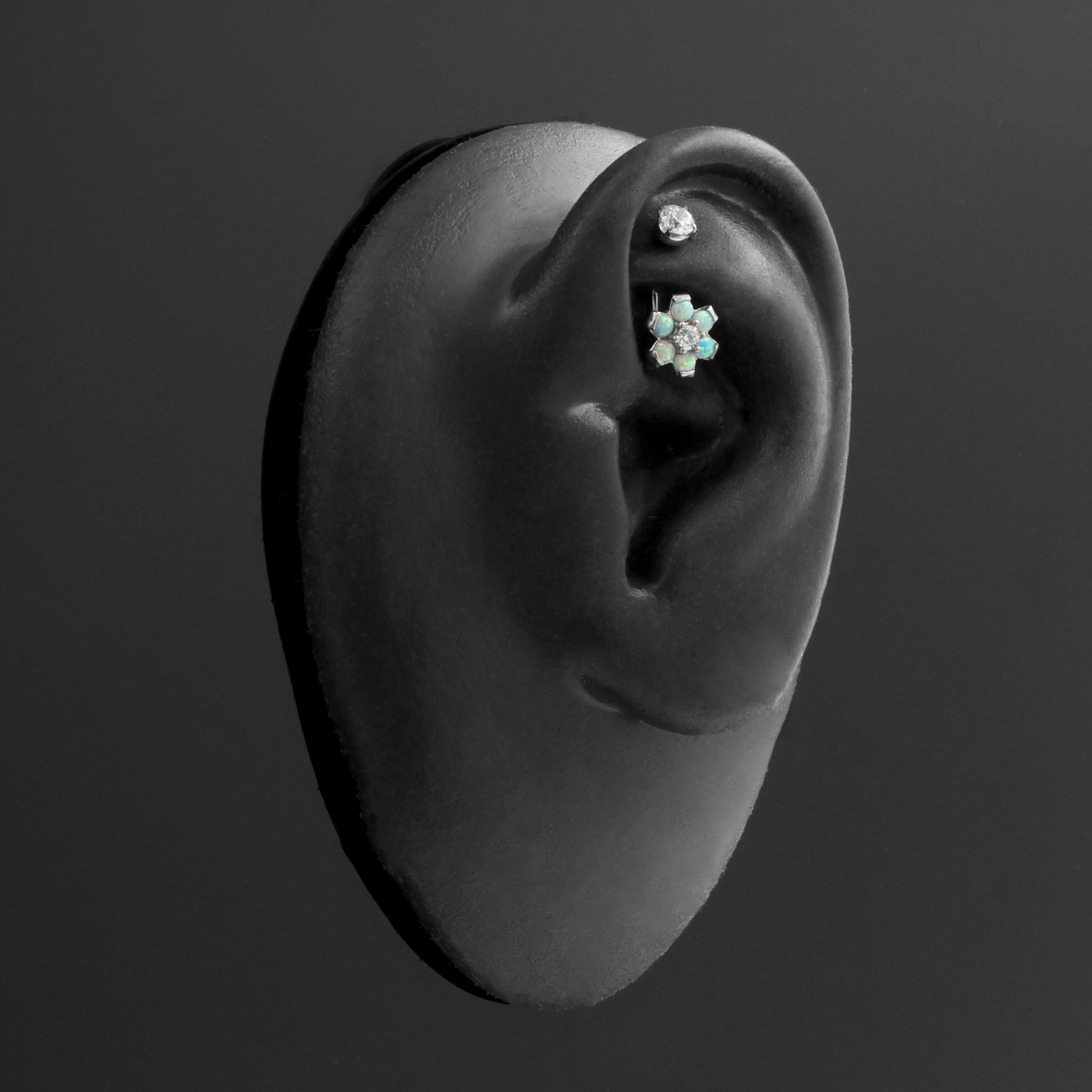 Surgical Steel Opal Zirconia Flower - Rook Piercing Light Green Opal