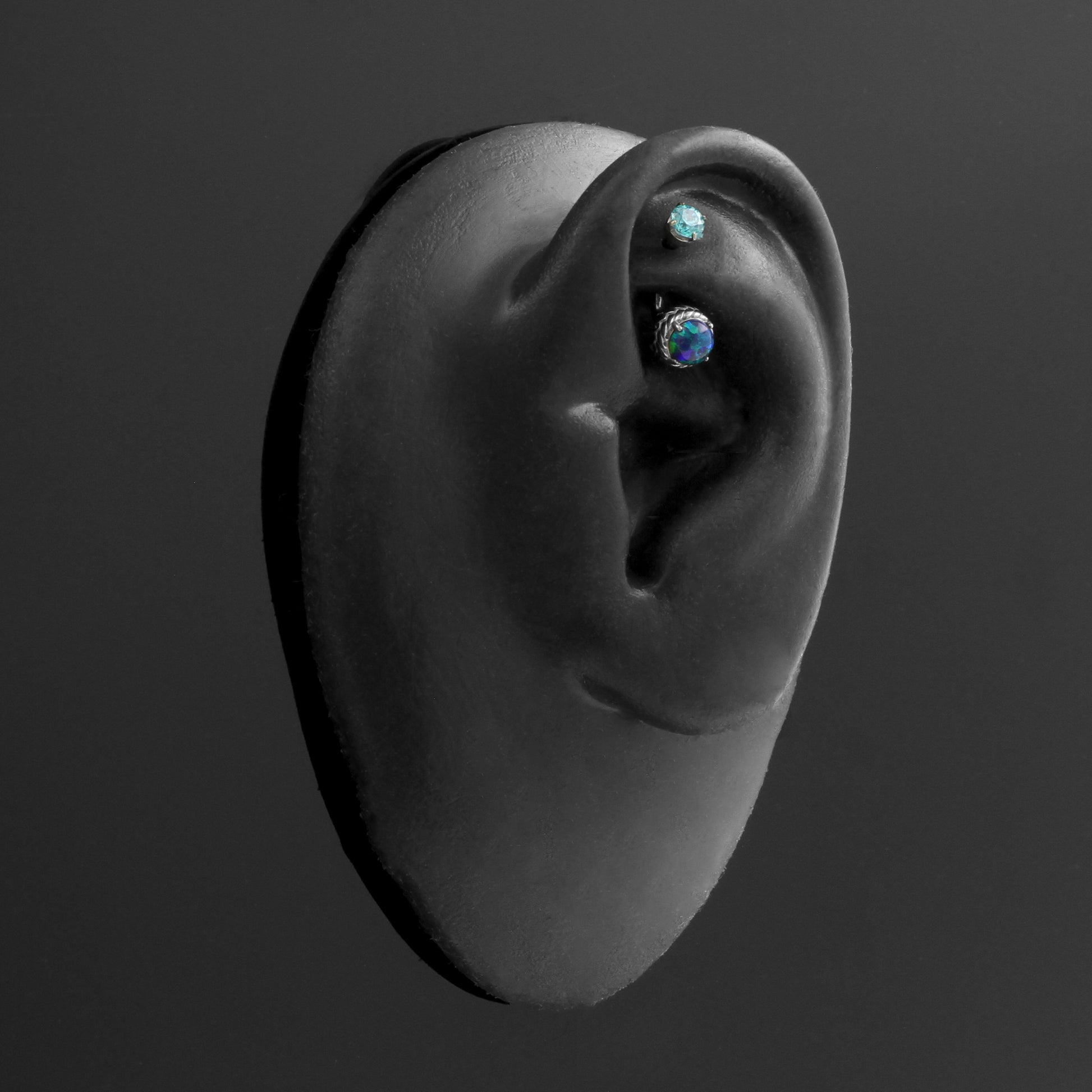 Surgical Steel Opal Zirconia - Rook Piercing Black Opal