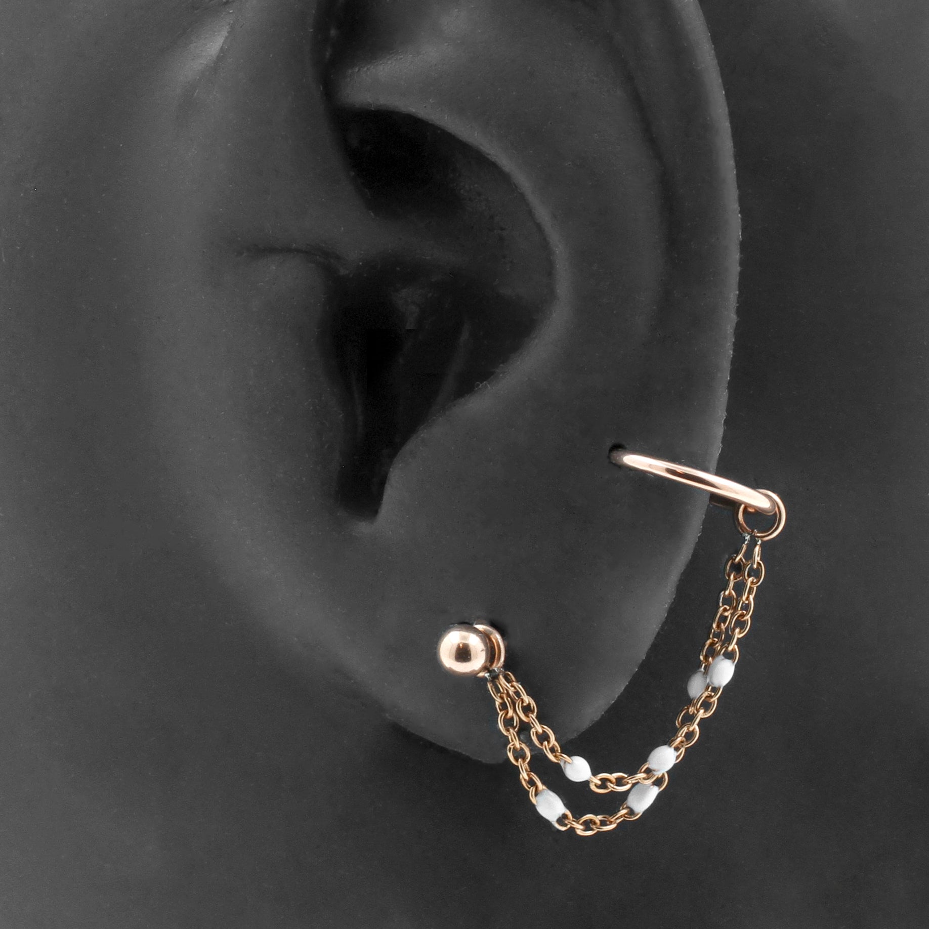 Surgical Steel Piercing Chain - Enamel Double Rose Gold