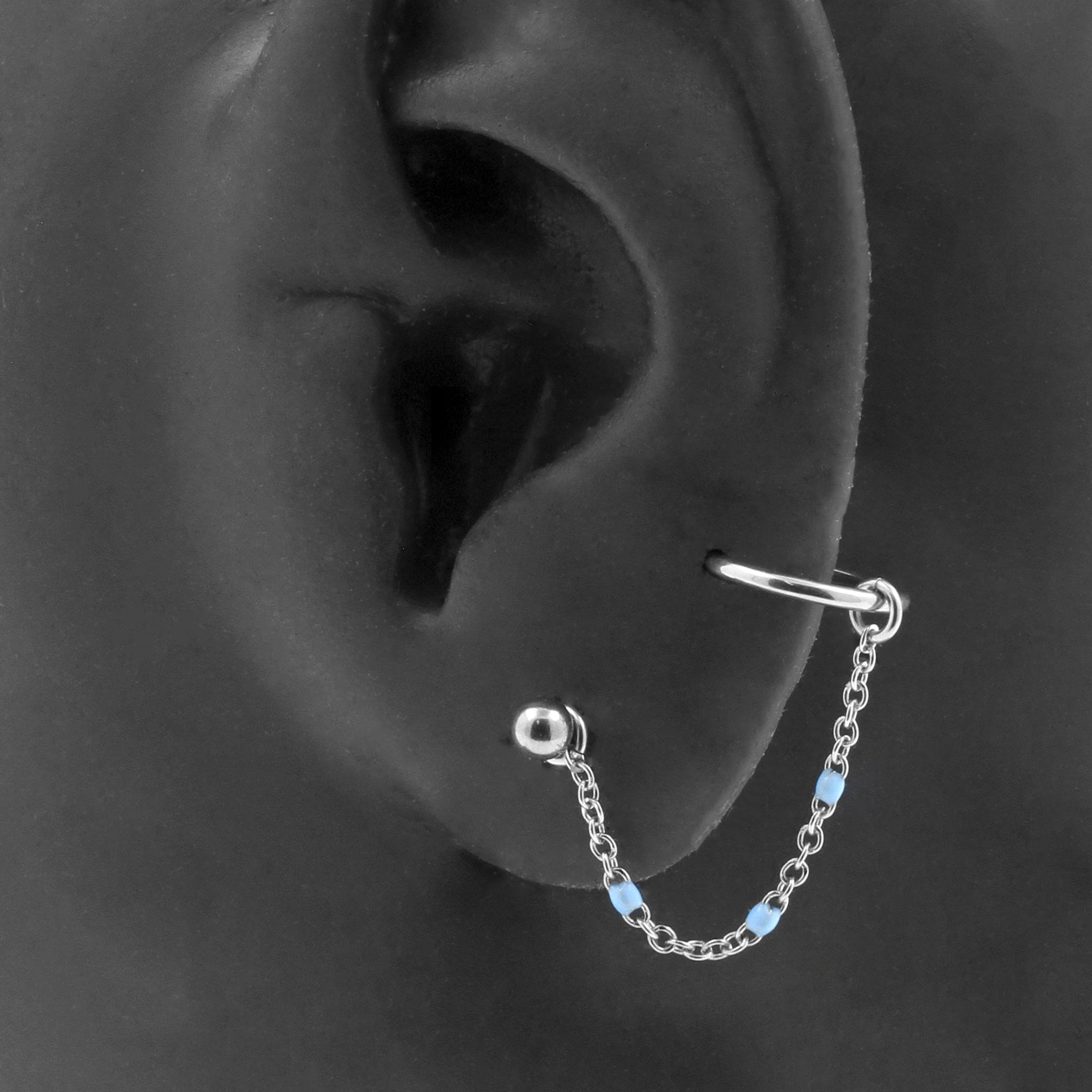 Surgical Steel Piercing Chain - Enamel Light Blue Sapphire