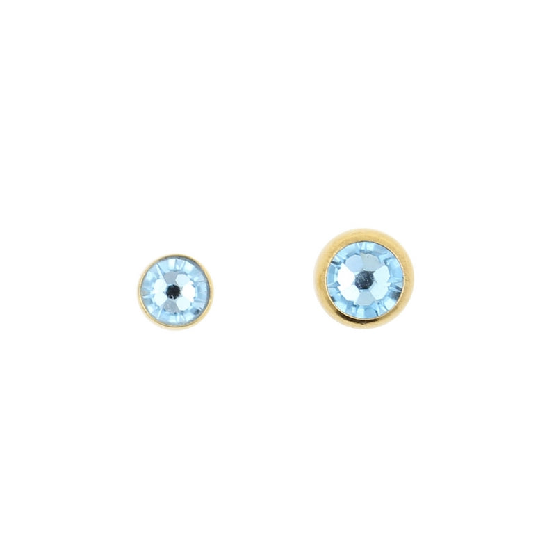 Surgical Steel Threaded Ball With Crystal Aquamarine
