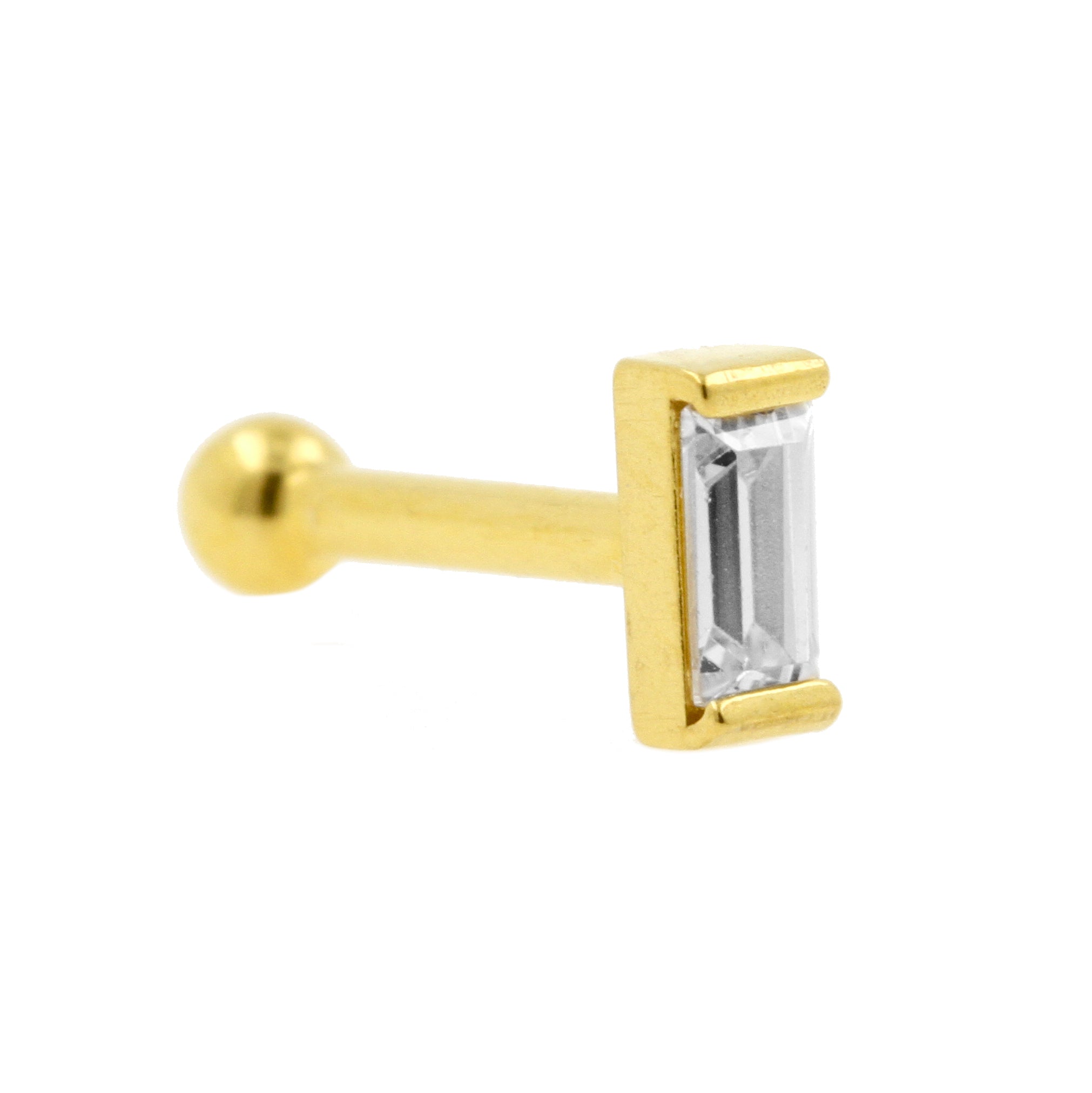 Surgical Steel Tragus Barbell - Zirconia Rectangle 5mm Gold