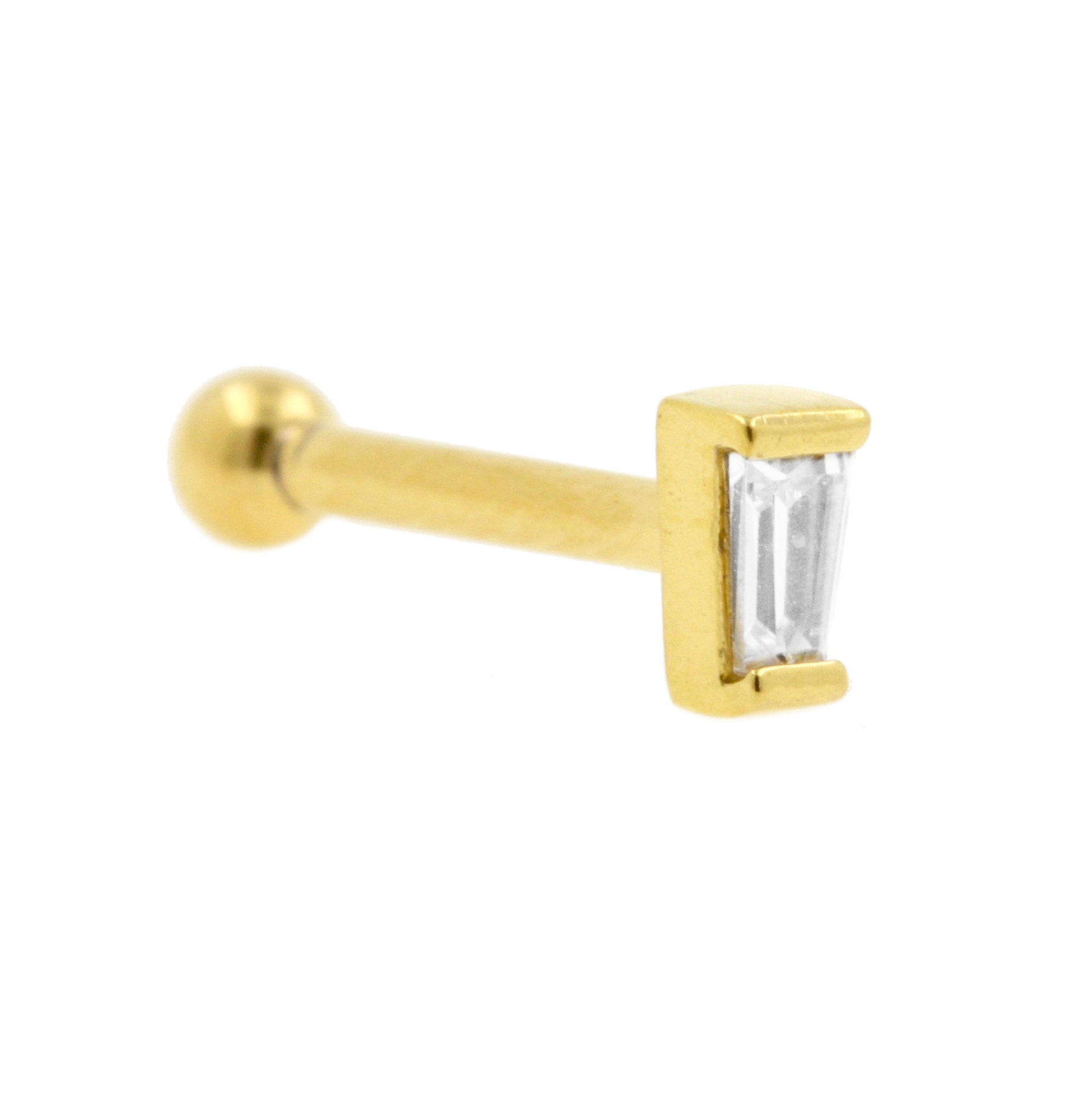 Surgical Steel Tragus Barbell - Zirconia Trapezoid Gold