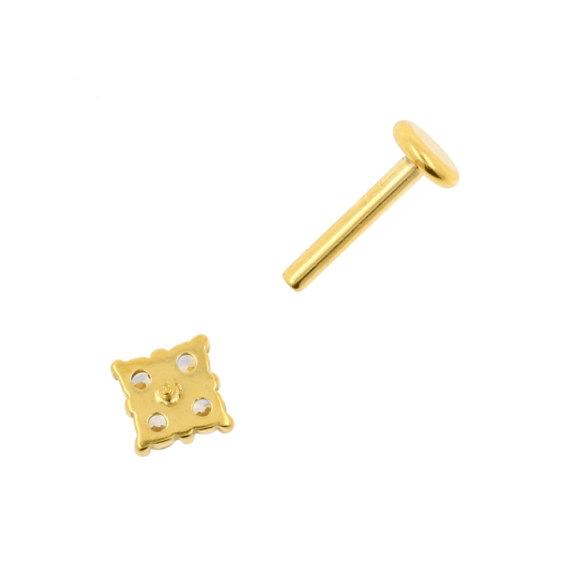 Surgical Steel Zirconia Labret Stud - Square Gold