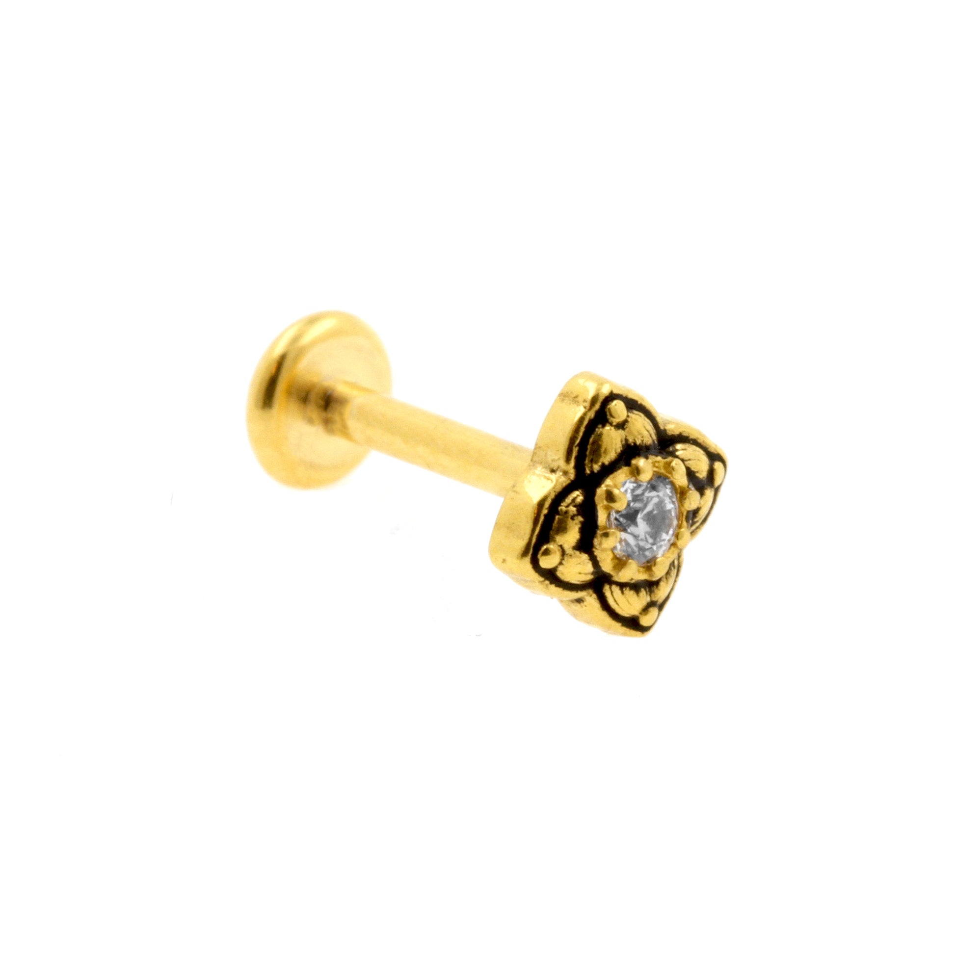 Surgical Steel Zirconia Labret Stud - Star Gold