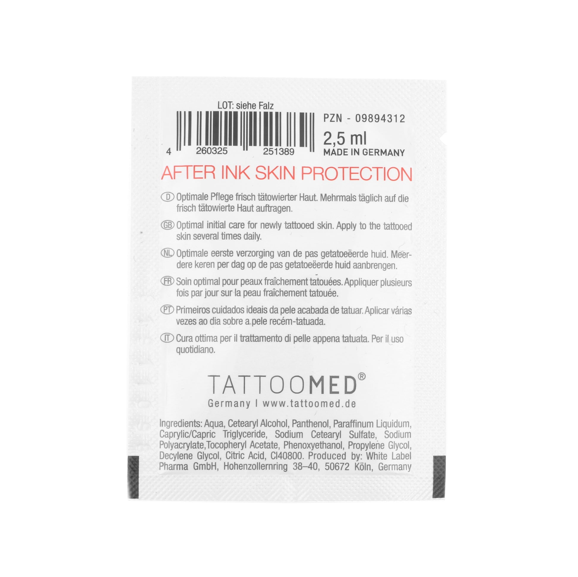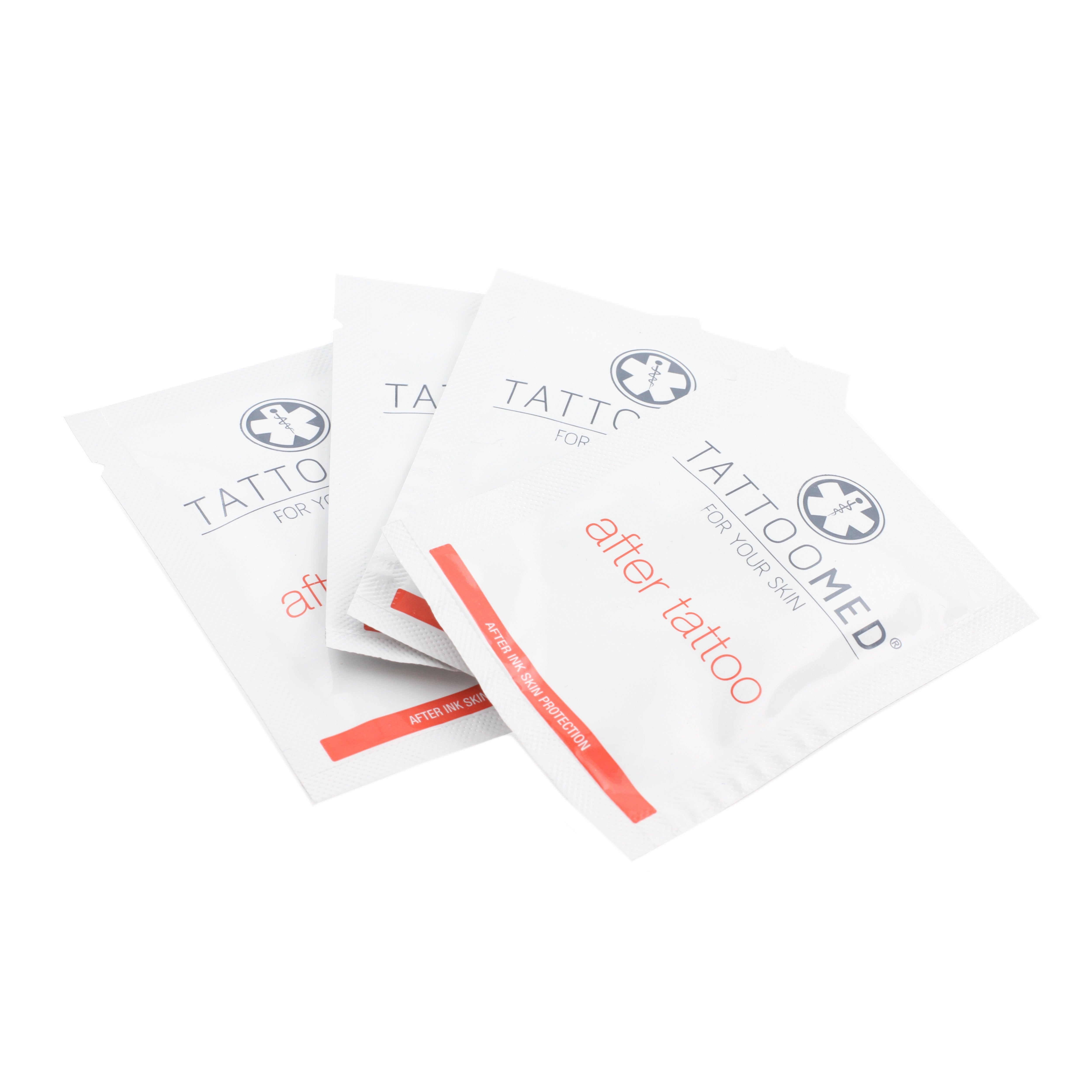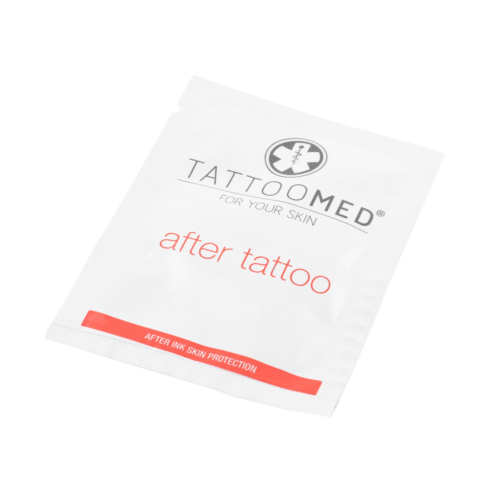 Vegan tattoo verzorging van TattooMed, nu ook in een handige meeneemverpakking! Deze superfijne creme van TattooMed is ideaal voor de verzorging van je vers gezette tattoo. De creme bevat diverse verzachtende ingredienten die helpen bij de genezing van je tattoo en je huid bovendien ook nog eens goed verzorgen. Panthenol vermindert de jeuk en branderigheid terwijl de Vitamine E je huid een flinke boost geeft en goed soepel houdt. De creme sluit de huid niet af en vermindert bij regelmatig gebruik ook nog eens de korstvorming van je verse tattoo. Verpakt in een handige sachet, ideaal voor op reis of om mee te nemen naar festivals. Vrij van parabenen en niet getest op dieren!