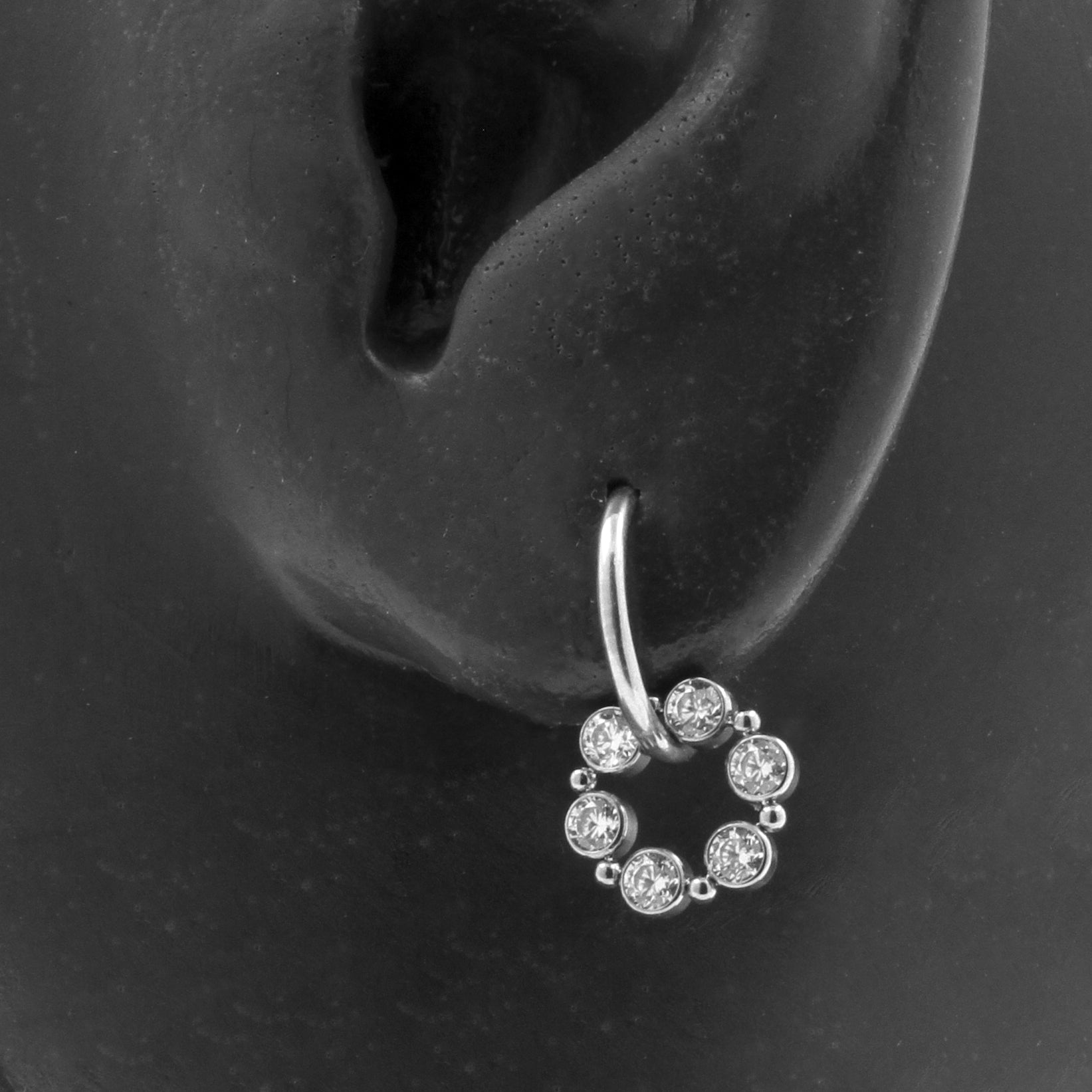 Titanium Click Ring Charm - Zirconia Circle Cluster Silver