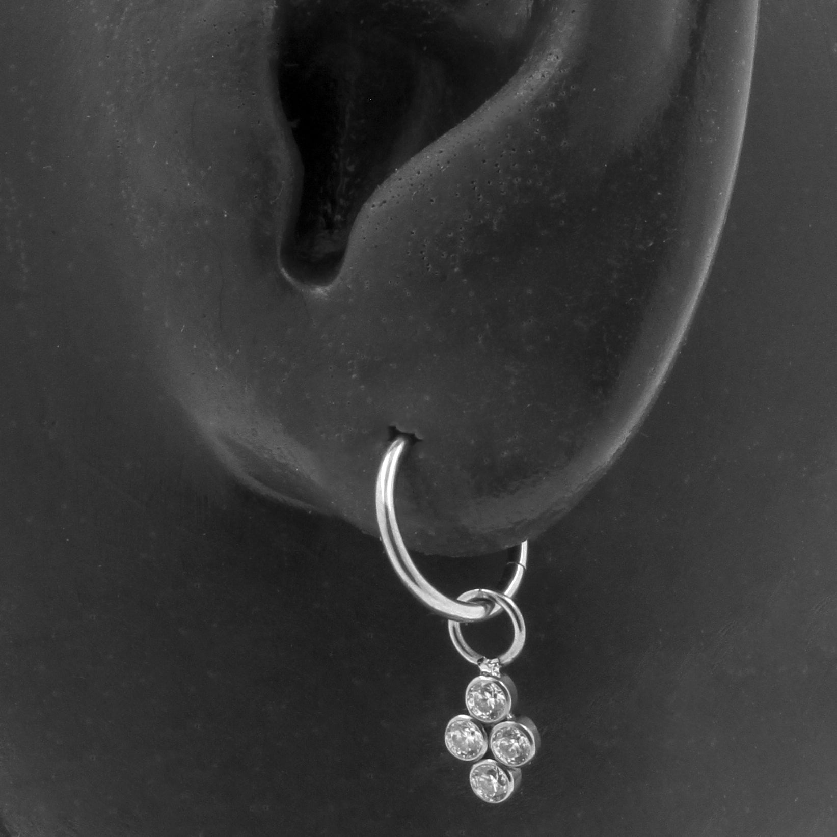 Titanium Click Ring Charm - Zirconia Cluster Silver