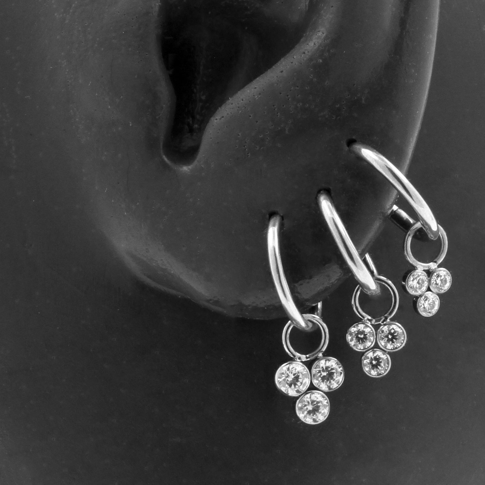 Titanium Click Ring Charm - Zirconia Triple Cluster Silver