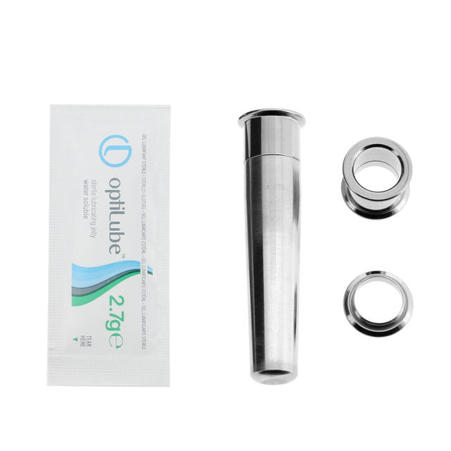 Earlobe stretching made easy with this kit! Inside the kit you'll find two titanium tunnels with a matching steel taper which can be screwed to the tunnels. Together with the supplied True Jelly (sterile stretching gel) you'll easily stretch your lobes and bring the tunnels in place in one single movement. After this you simply unscrew the taper, close the tunnels and wait until your lobes are fully healed. Don't forget, stretching must be done slowly and without any pain. Stretch in small increments with a maximum of 1 millimeter each time. Wait 4 to 6 weeks until you stretch again.