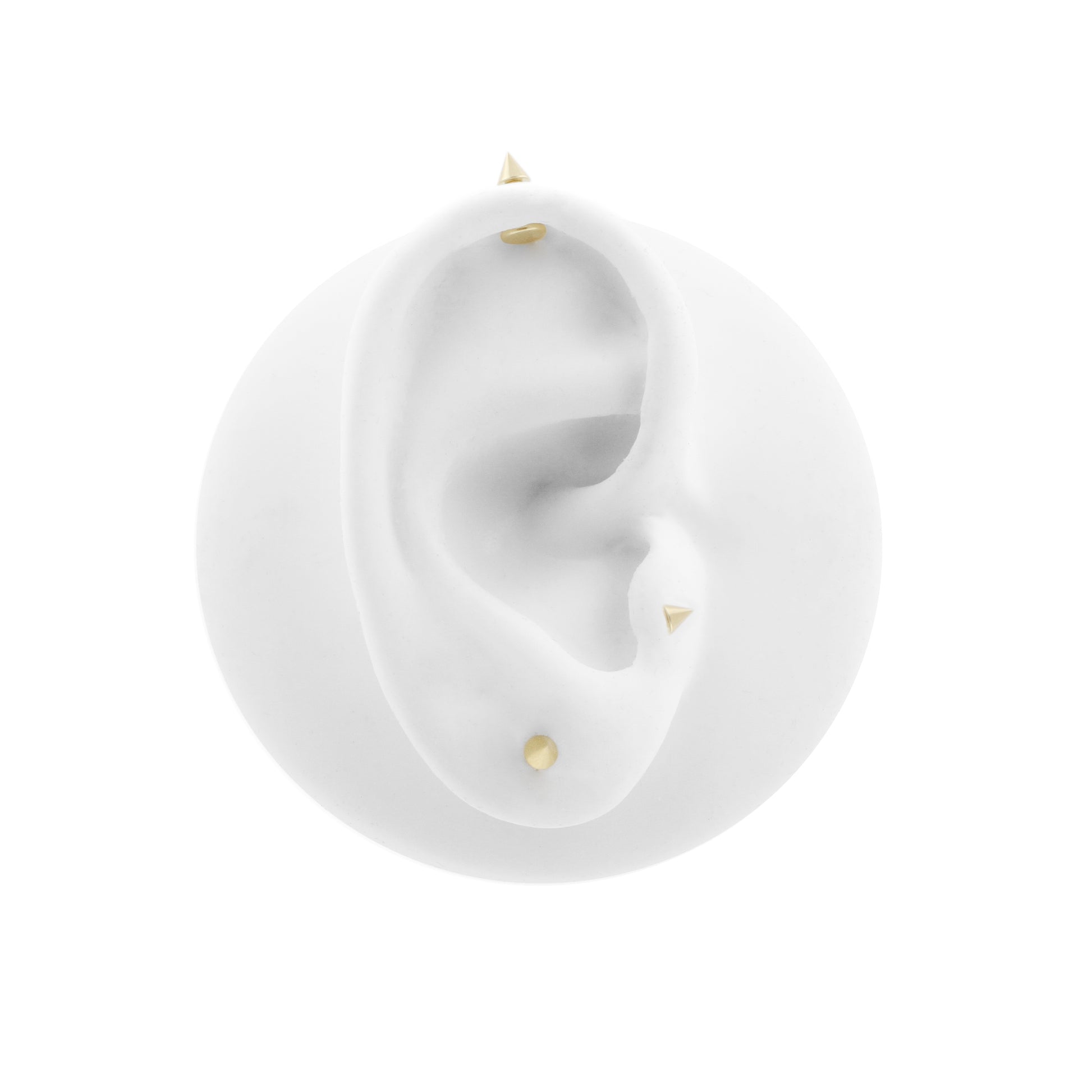 Edgy with a golden edge – the spike is back in style. This titanium flatback stud features an 18K gold P.V.D. coating that matches real gold. The flat back sits comfortably and won’t press into your neck or head when lying down. Water-resistant and colorfast for long-lasting wear. A complete piece that instantly elevates your ear stack.
