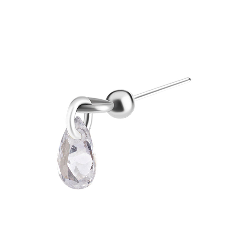 Titanium Helix Dangle - Zirconia Droplet Silver instantly adds a stylish touch to your piercing. This Threadless Top is made of Titanium. The threadless system allows you to easily combine this top with all our bars, which we call Threadless Base, for a perfect fit and ultimate comfort.