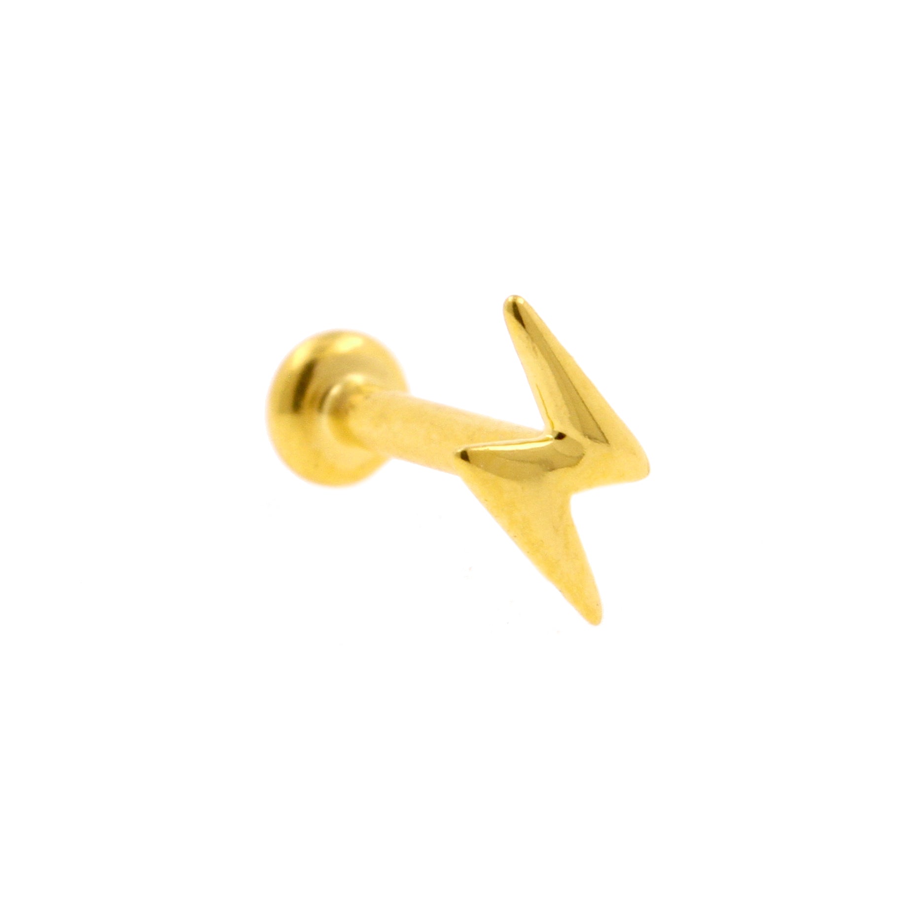 Titanium Labret Stud With Lightning Bolt - Left Gold