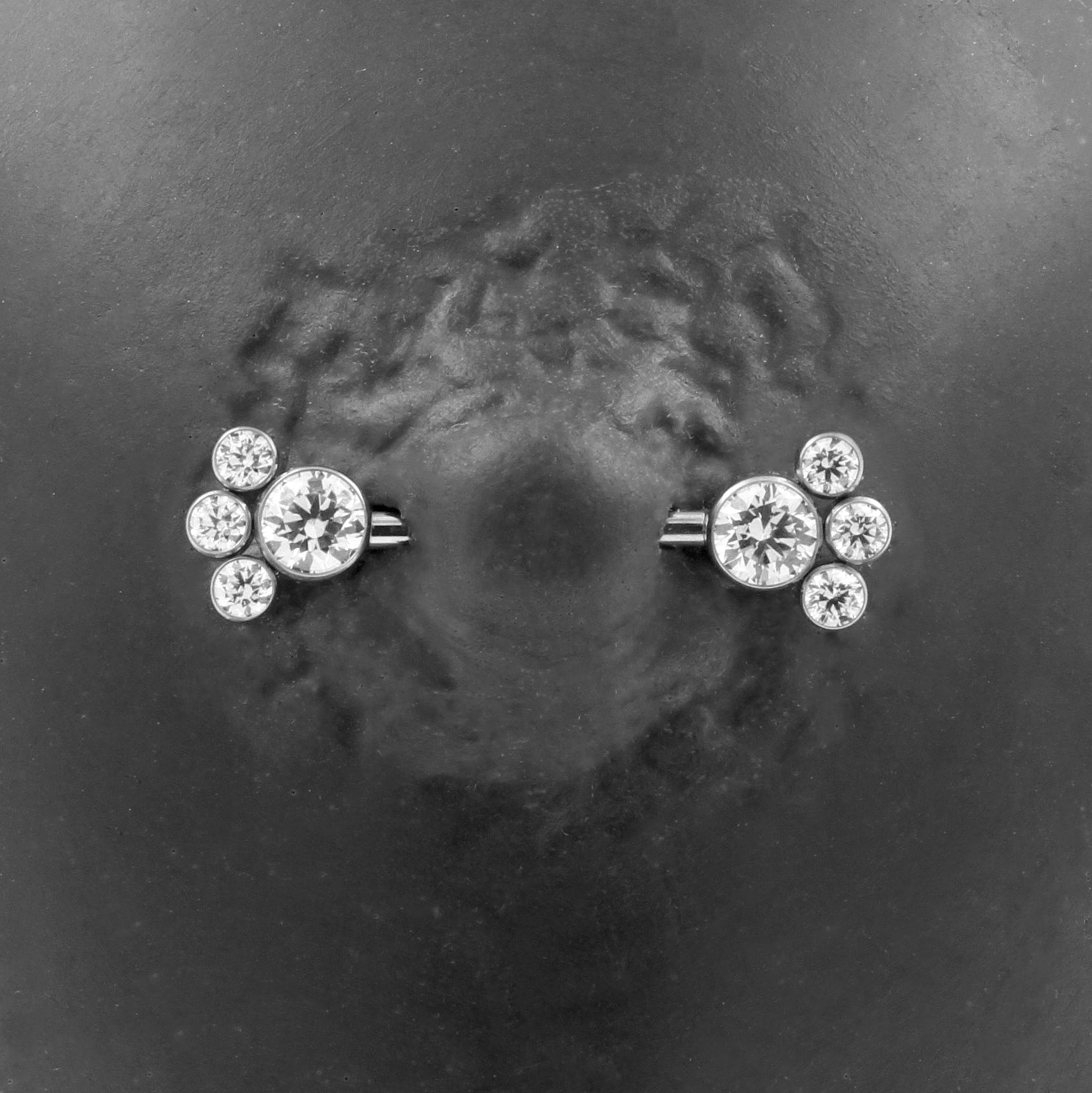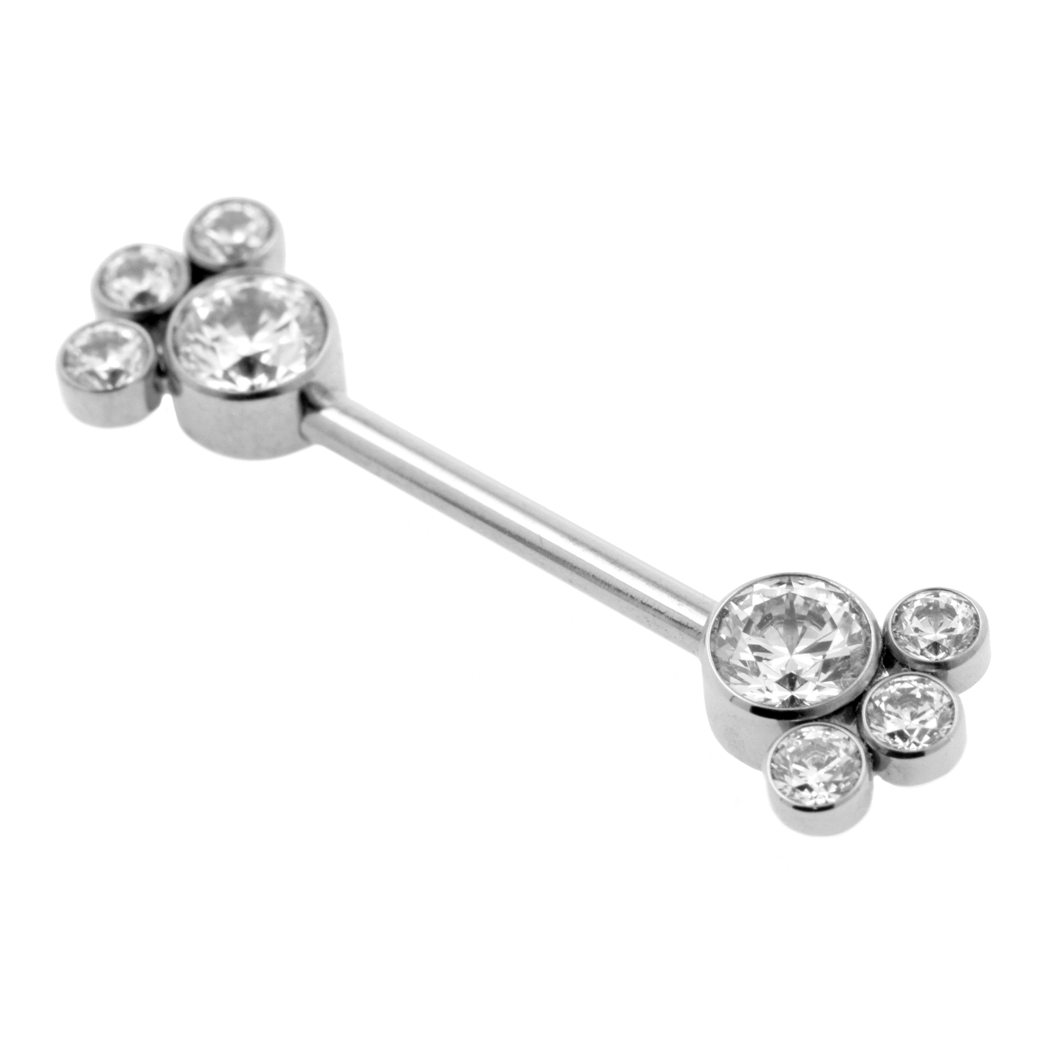 Titanium Nipple Barbell With Zirconia Cluster Silver