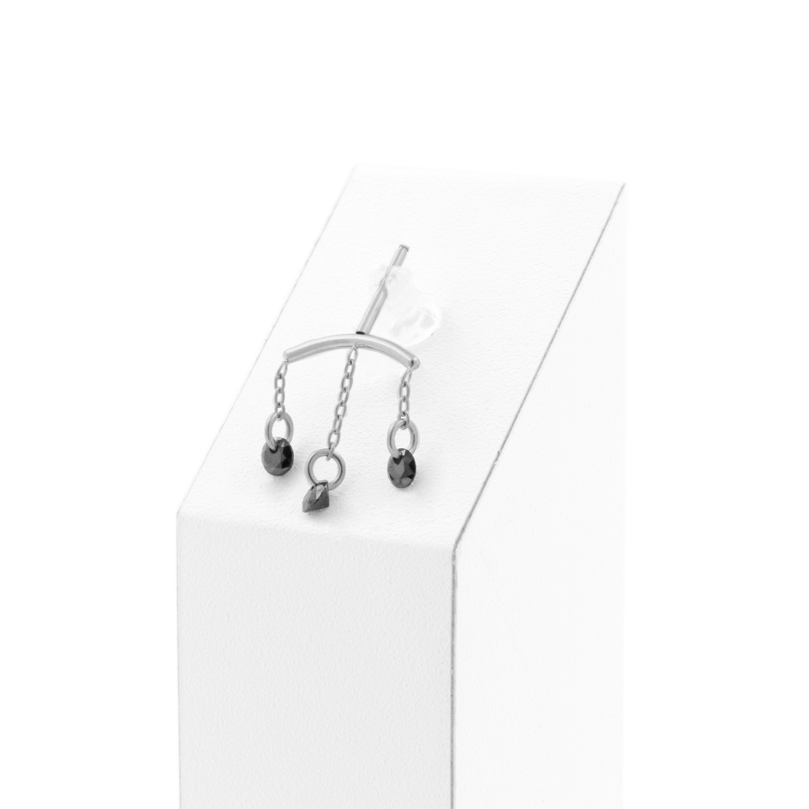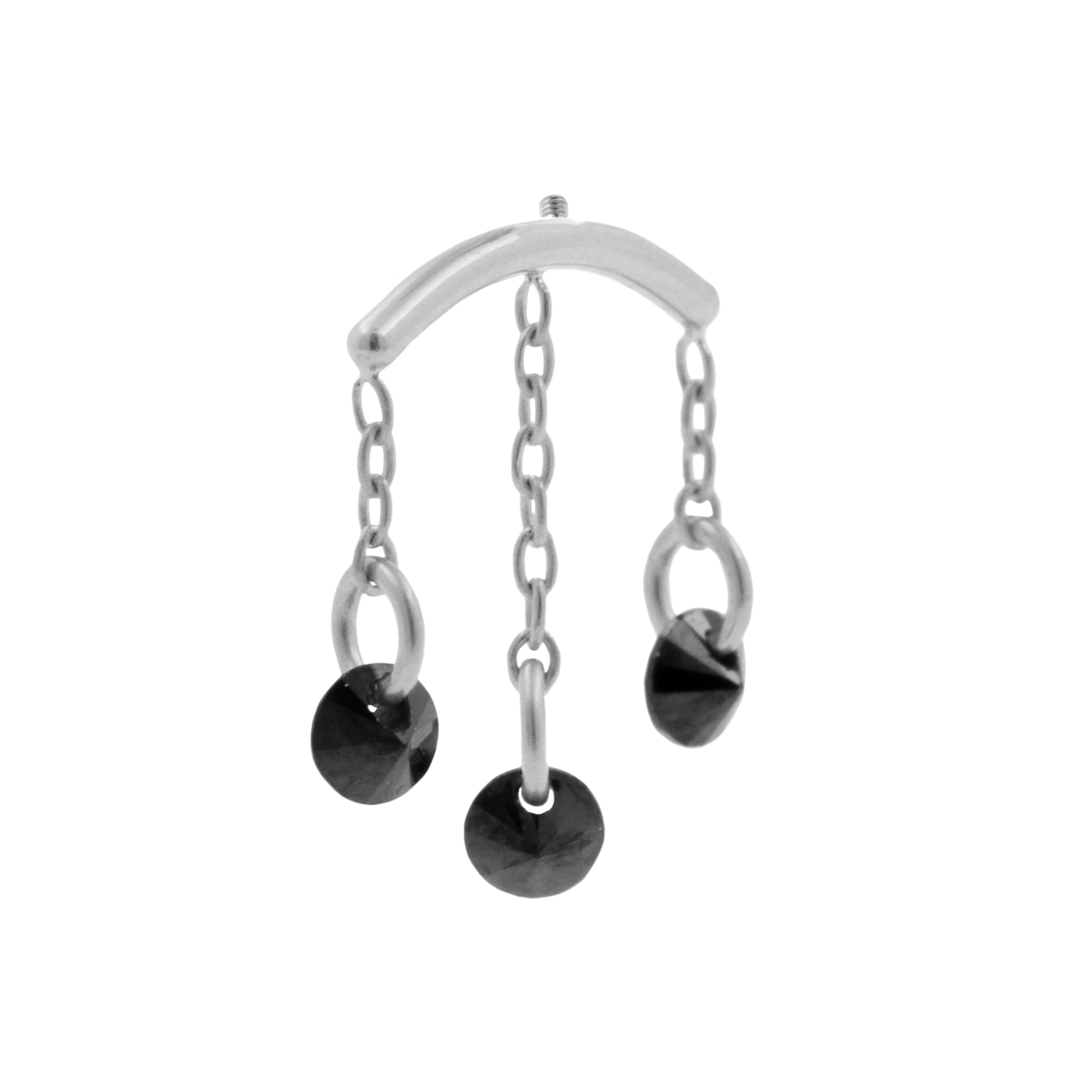 Give your vertical helix piercing an elegant look with this titanium curve, featuring dangling sparkling black cubic zirconia. The titanium is finished with silver-colored PVD CoCr coating with the look of white gold (nickel-free). This piece is internally threaded and compatible with 1.2 mm internally threaded bars, ensuring safe and comfortable wear.
