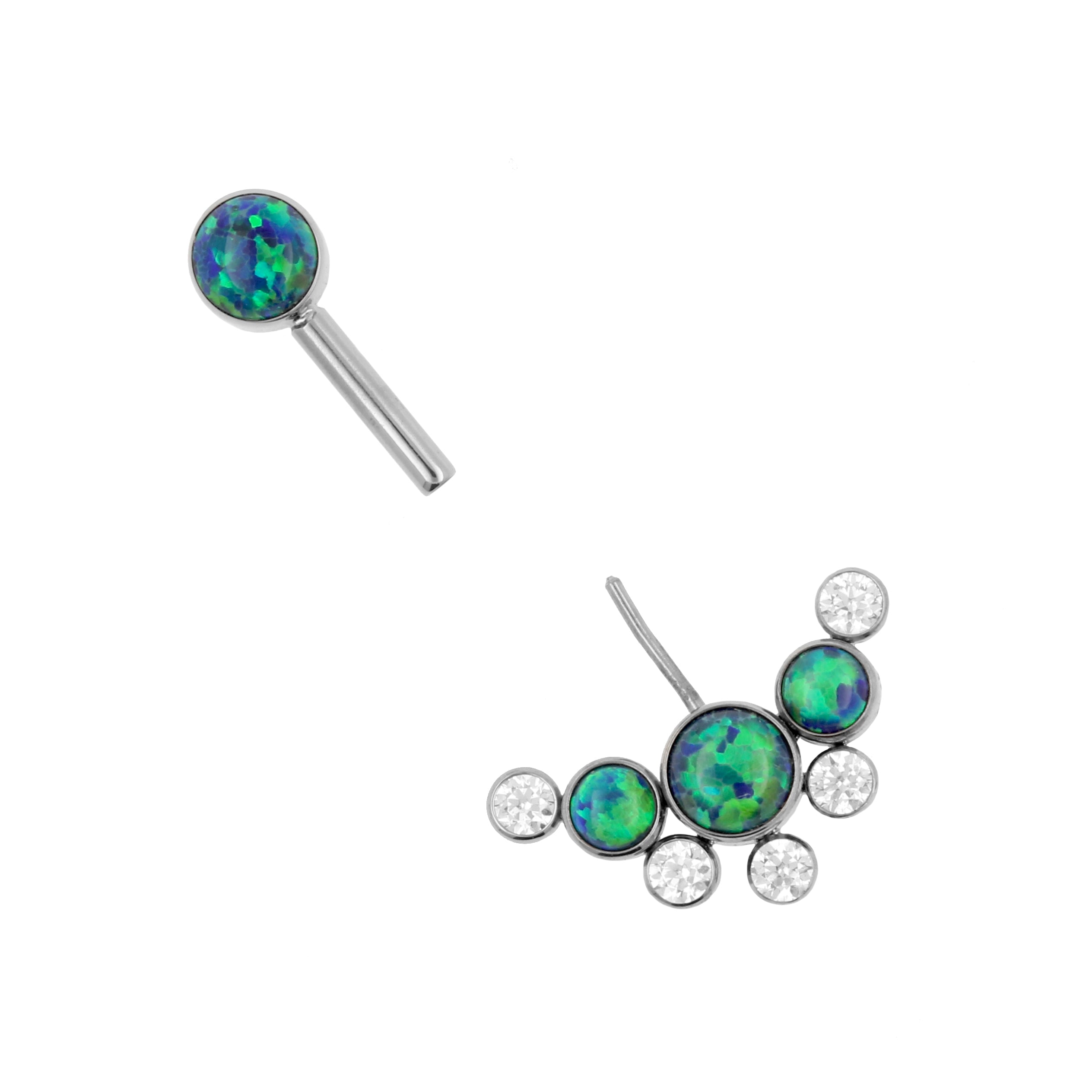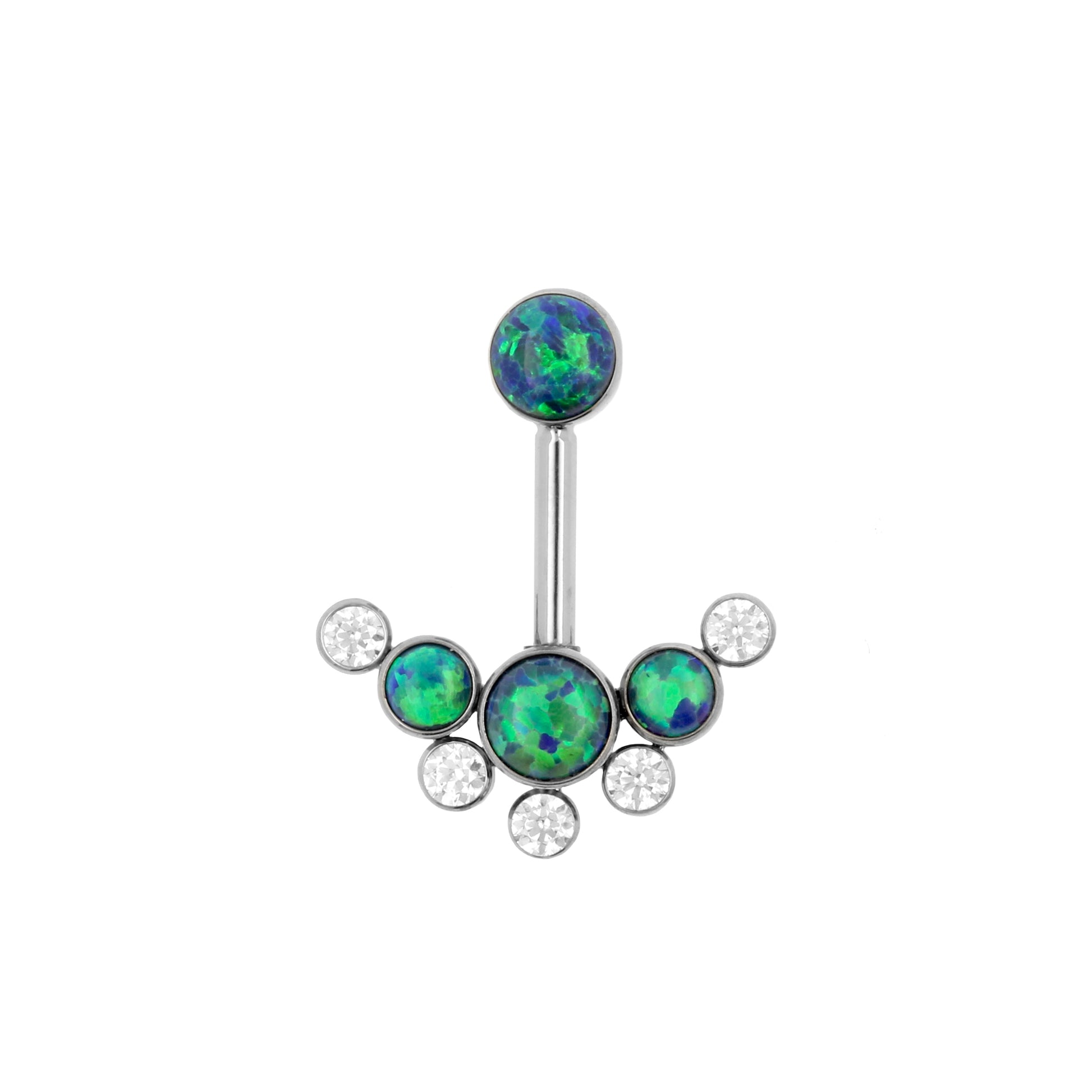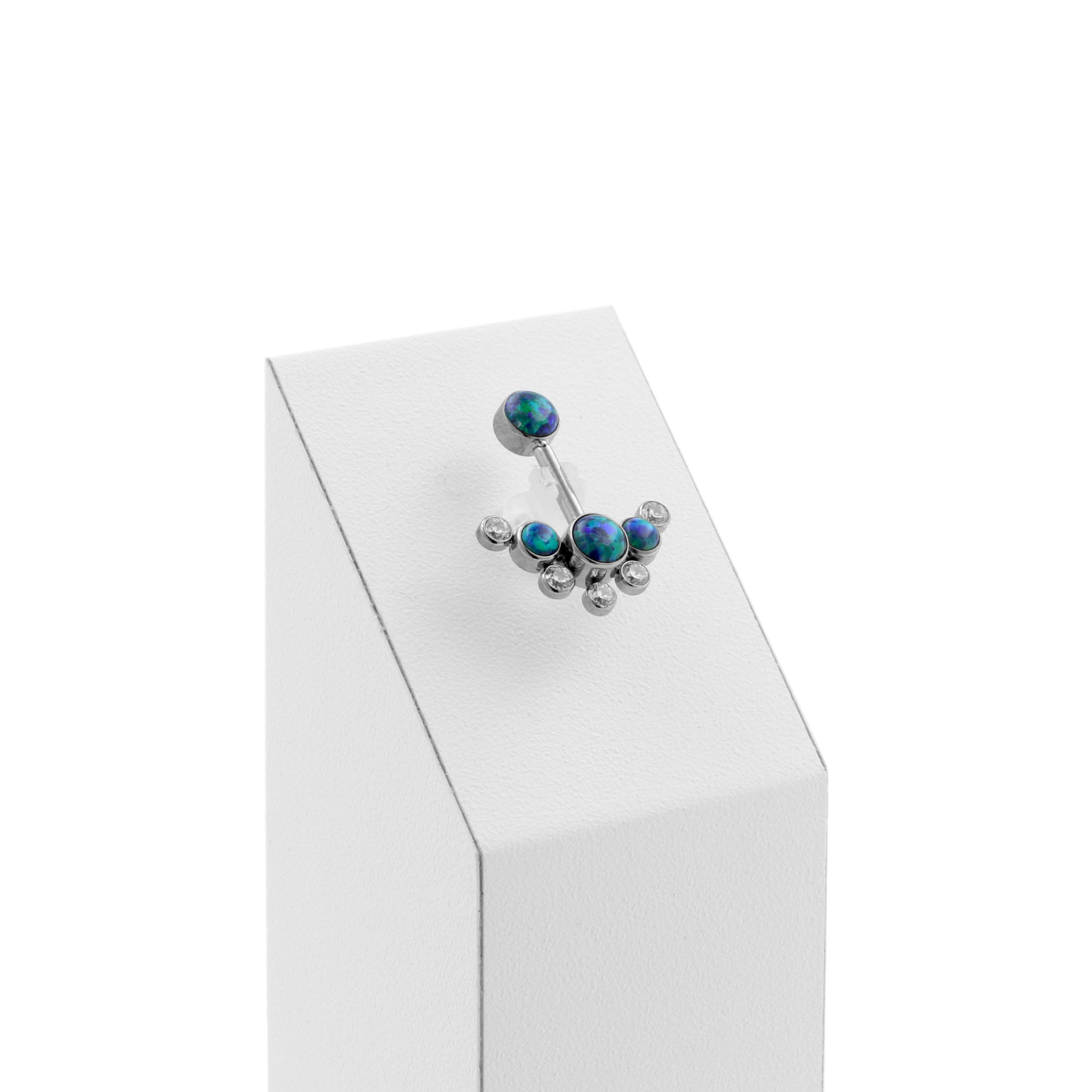 Titanium Vertical Helix - Opal And Zirconia Cluster Black Opal