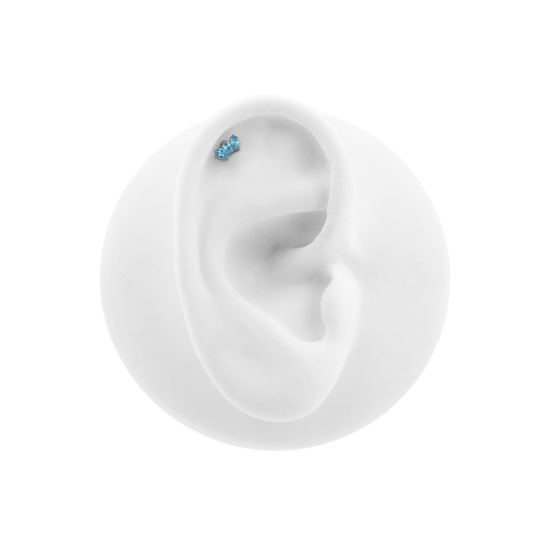 Titanium Zirconia Cluster Top - Aqua instantly adds a stylish touch to your piercing. This Threadless Top is made of Titanium with a cubic zirconia in Aqua. The threadless system allows you to easily combine this top with all our bars, which we call Threadless Base, for a perfect fit and ultimate comfort.
