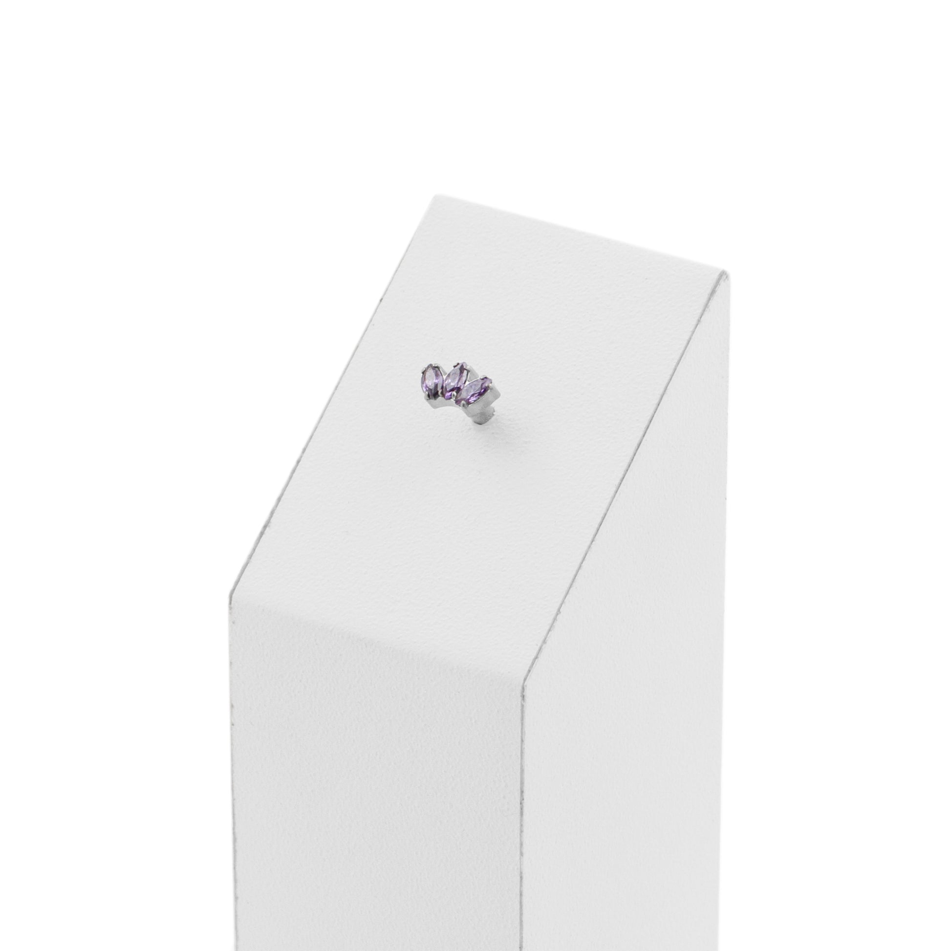 Titanium Zirconia Cluster Top - Purple instantly adds a stylish touch to your piercing. This Threadless Top is made of Titanium with a cubic zirconia in Purple. The threadless system allows you to easily combine this top with all our bars, which we call Threadless Base, for a perfect fit and ultimate comfort.