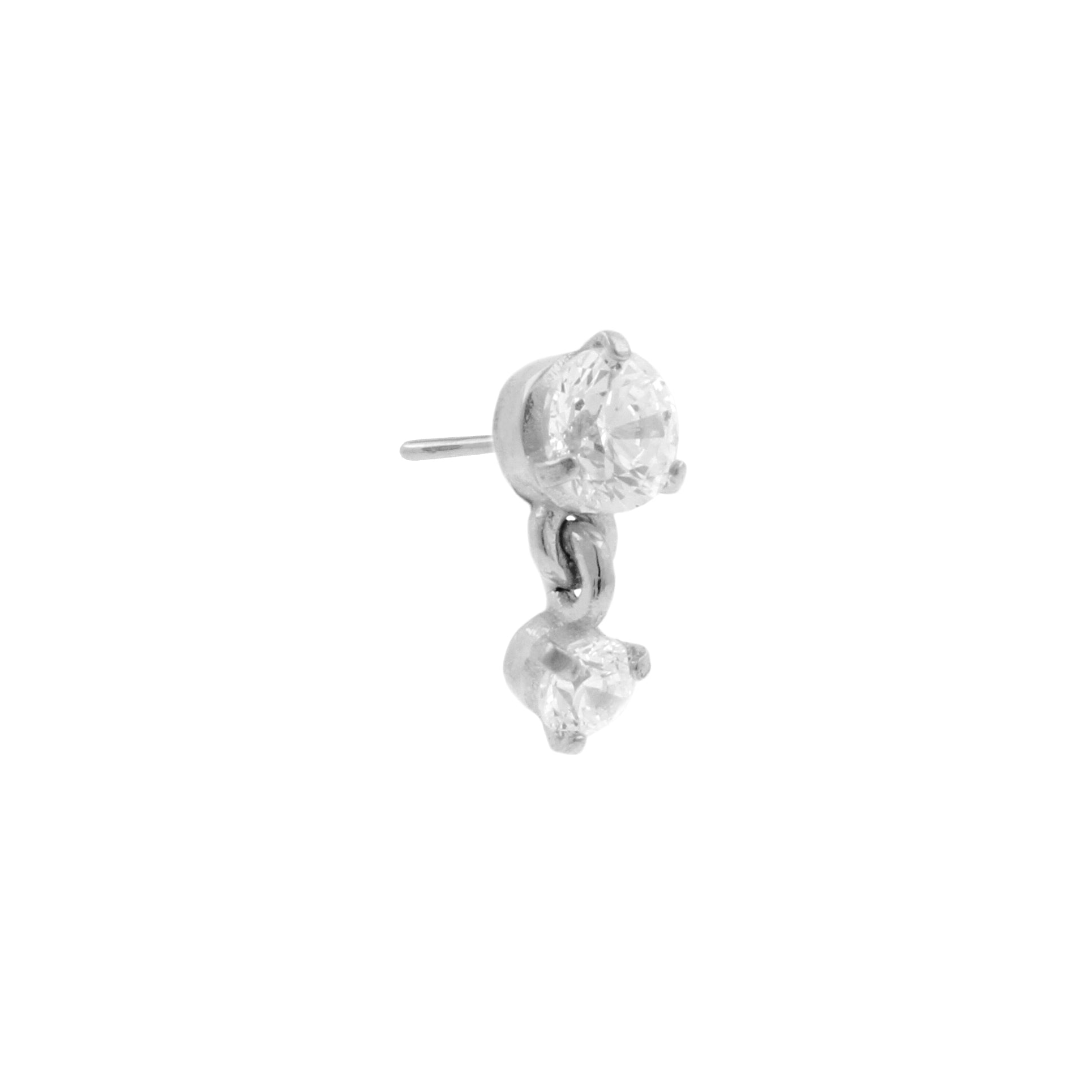 Refined sparkle with a gentle movement — this Threadless Top features two zirconia stones in an elegant design, with the smaller gem gracefully dangling beneath the larger one. Available in three sizes so you can choose your perfect level of brilliance. Crafted from premium polished titanium: lightweight, strong, and hypoallergenic for all?day comfort.
