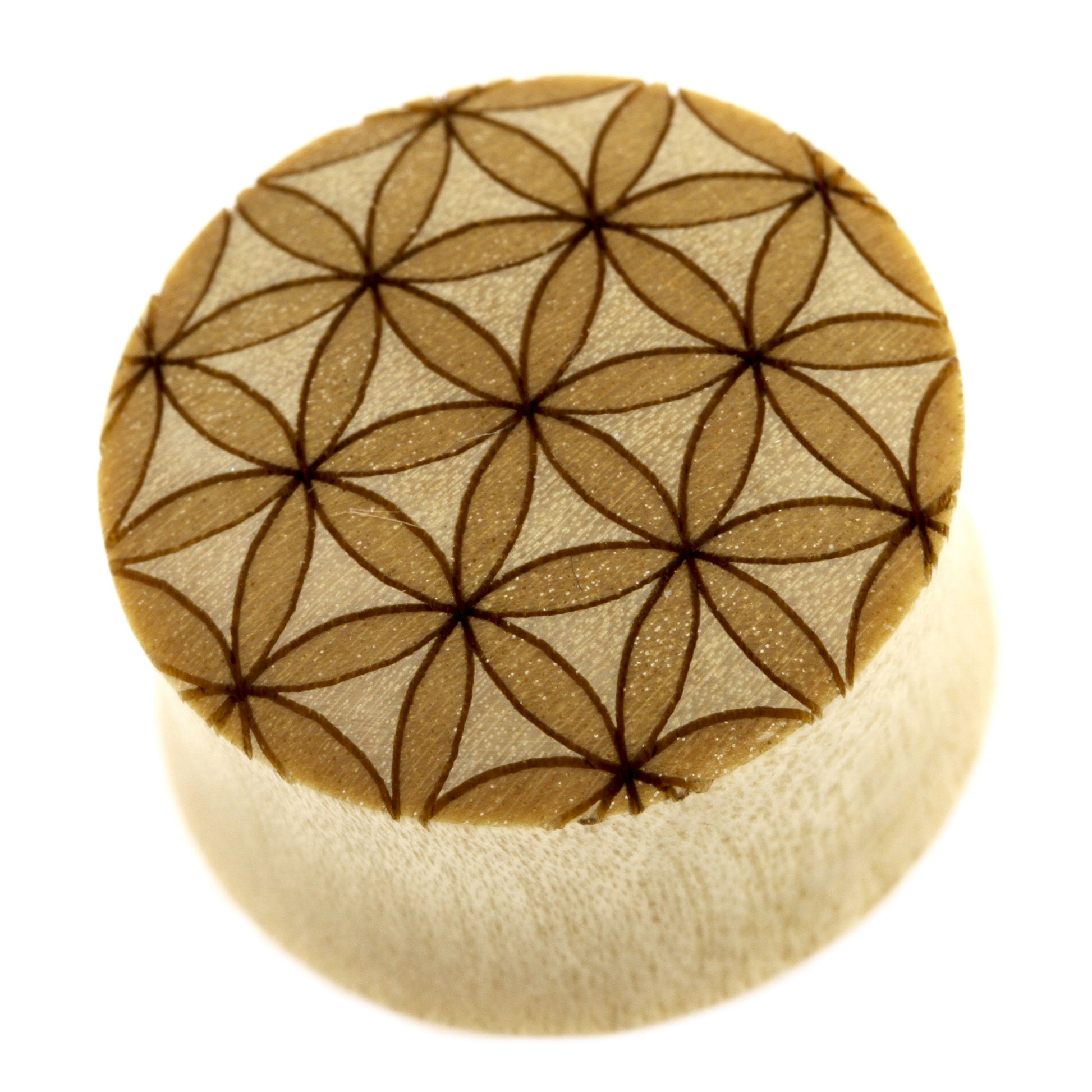 Wood Flower of Life Plugs - Crocodile Light Brown