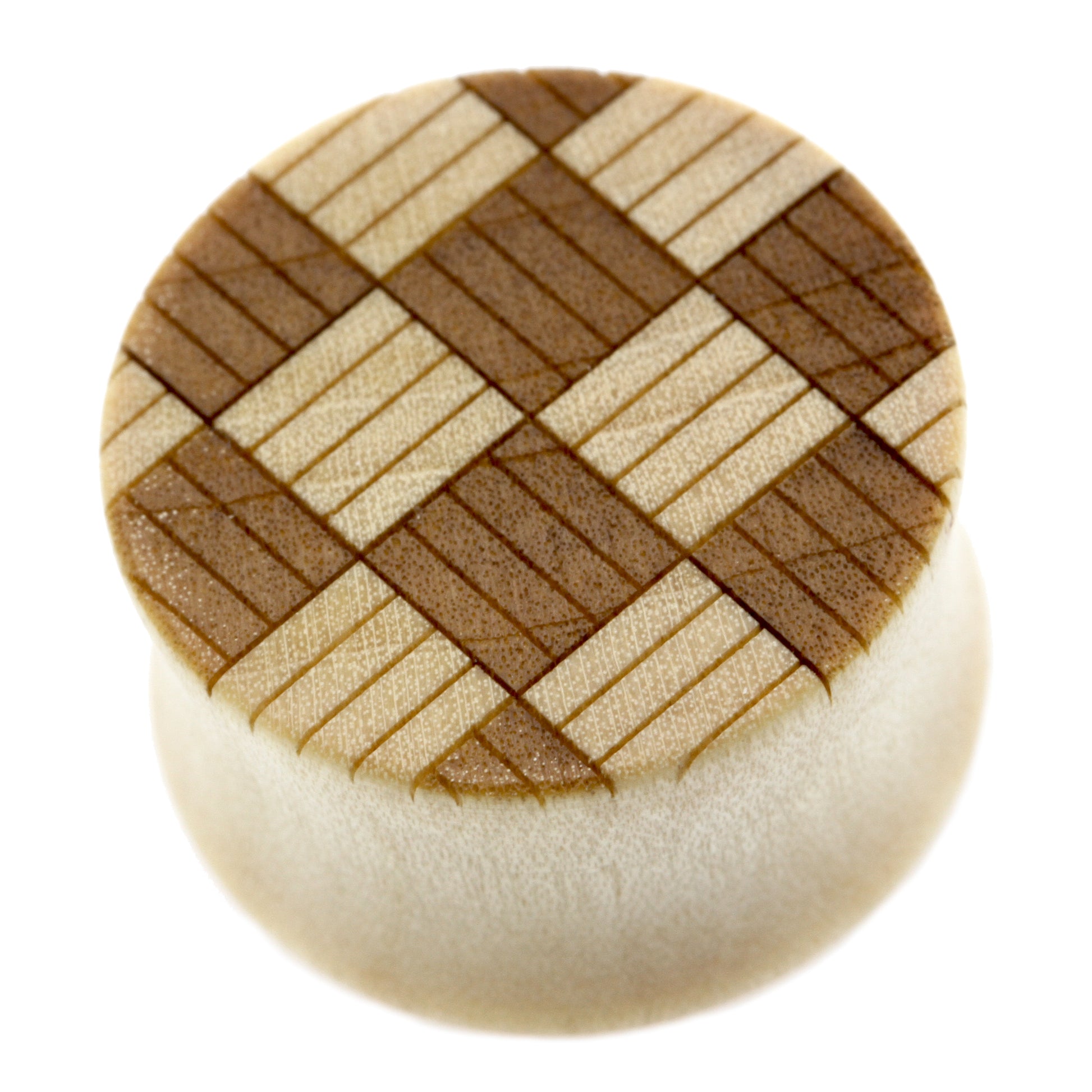 Wood Weaved Squares Plugs - Crocodile Light Brown